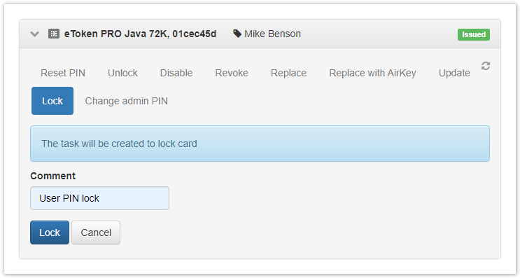 Agent tasks are defined in Cards section or in User card. Tasks (operations) with smart card can be performed using Agent or without it, using Agent only or without Agent usage only.