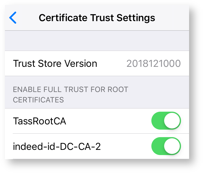 1. For IOS devices, open the following:  SettingsGeneral About → Certificates Trust Settings. Mark the installed certificate as trusted in the “Enable Full Trust for root certificates”.