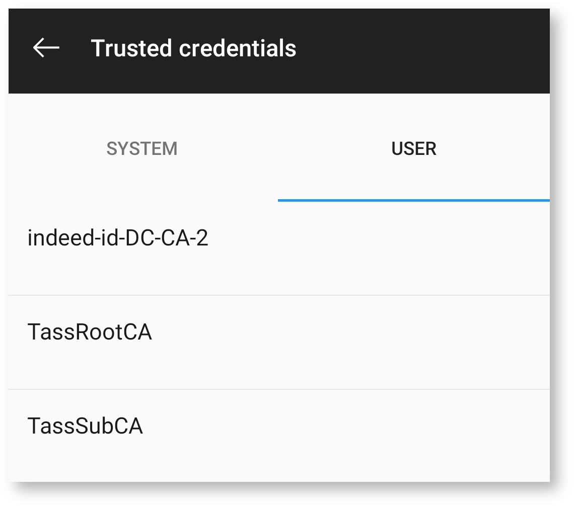 2. Make sure that the certificate is successfully added to “Trusted credentials” section.
