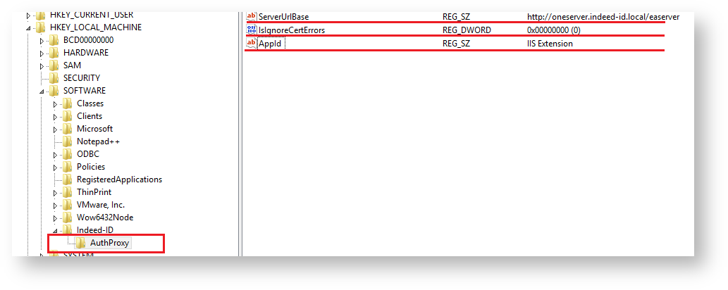 - Modify the following parameters in HKEY_LOCAL_MACHINE\SOFTWARE\Indeed-ID\AuthProxy section: