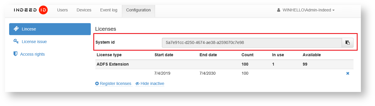 3. Copy the value of System identifier field and send it to the manager assigned to your organization or to support service at: support@indeed-id.com