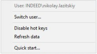 The following commands are available in the context menu opened by right-clicking the Axidian-Axidian AM ESSO Agent icon in the Windows notification bar: