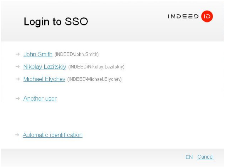 2. In the Login to SSO window select the necessary user account or Automatic identification item, if it is enabled.