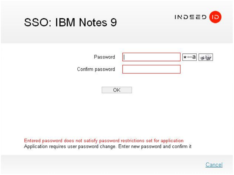 The new password entered in the standard manner is checked for compliance with password security criteria set for the application. An error message appears, if the password does not comply with the said criteria.