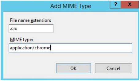 - In the MIME Types section of the website with chromeplugin application add a new type with .crx extension and application/chrome description.