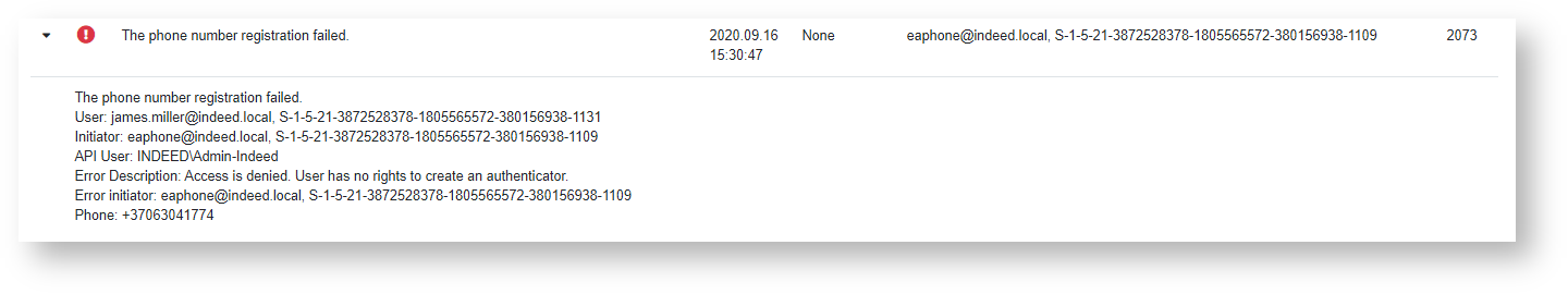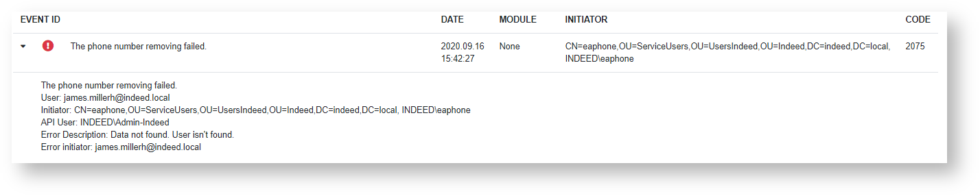 - Username − a username in the UPN format for which a phone number is changed.