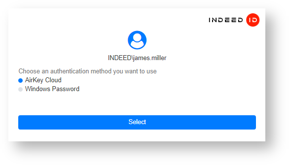 Choose an authentication method and click Select.