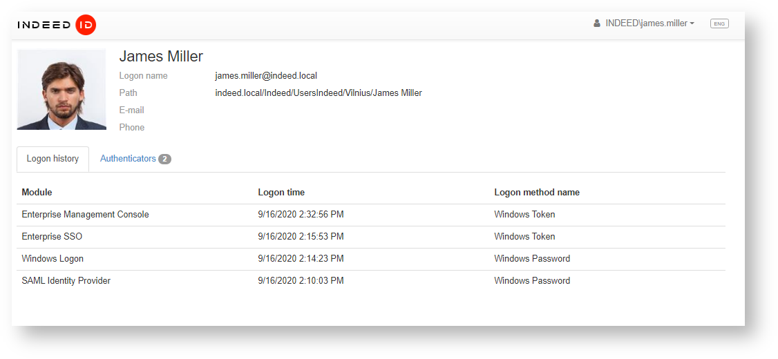 Indeed AM Self Service is an IIS-based web application. Users can manage their own authenticators in this module.