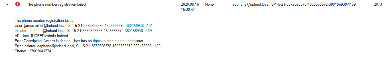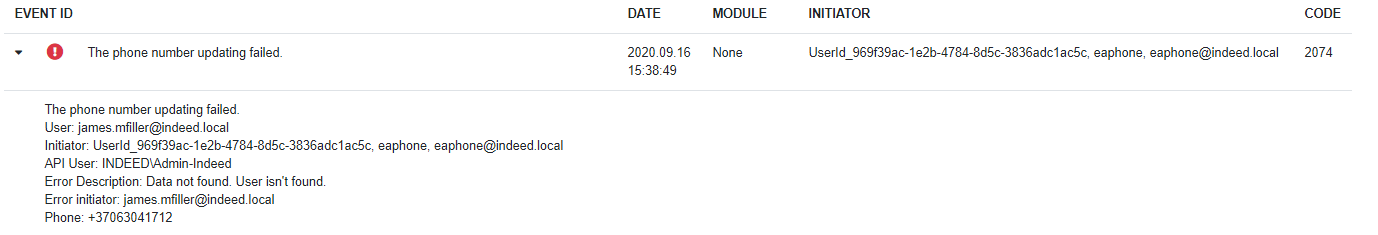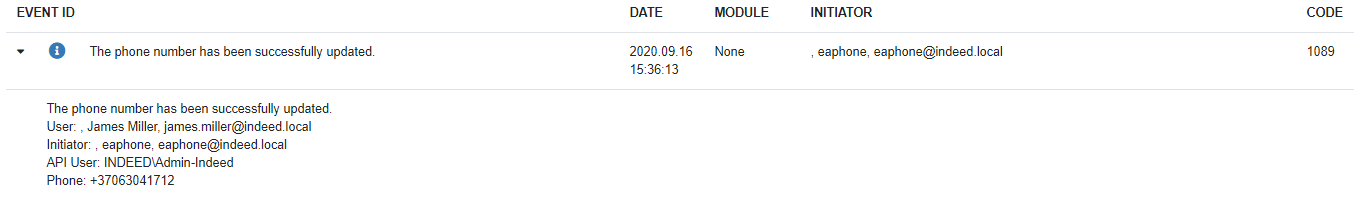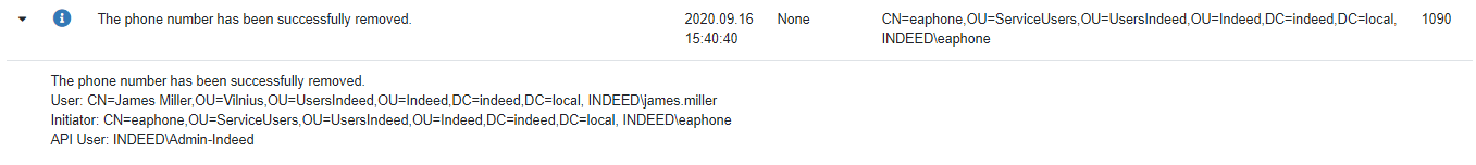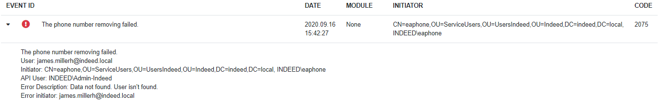 1. Username − a username in the UPN format for which a phone number is deleted.