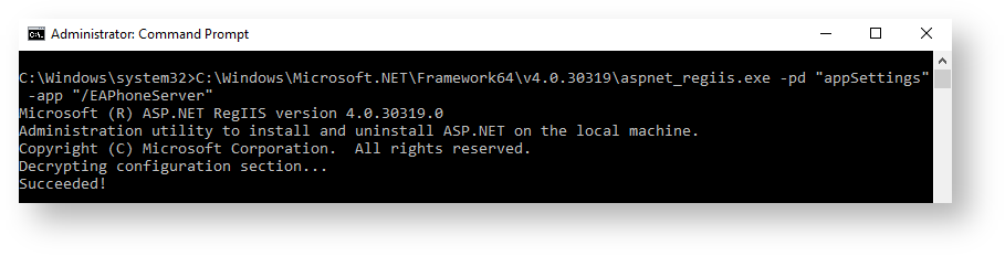 C:\Windows\Microsoft.NET\Framework64\v4.0.30319\aspnet_regiis.exe -pe "appSettings" -app "/EAPhoneServer" -prov "DataProtectionConfigurationProvider"