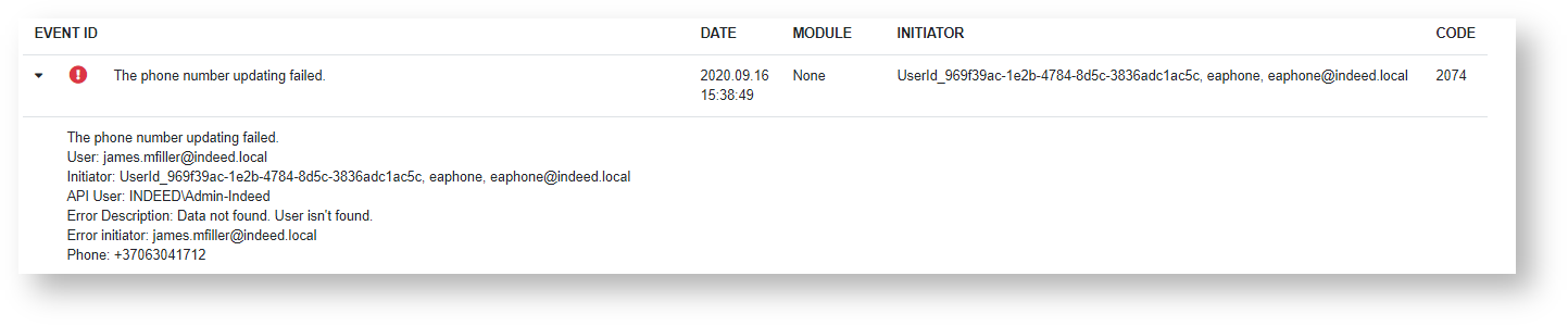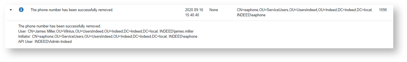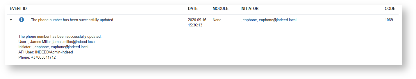 - Initiator − a user who was designated as an EAPhoneServer component administrator in the configuration file. You can set the username format in the configuration file (the lognames parameter).
