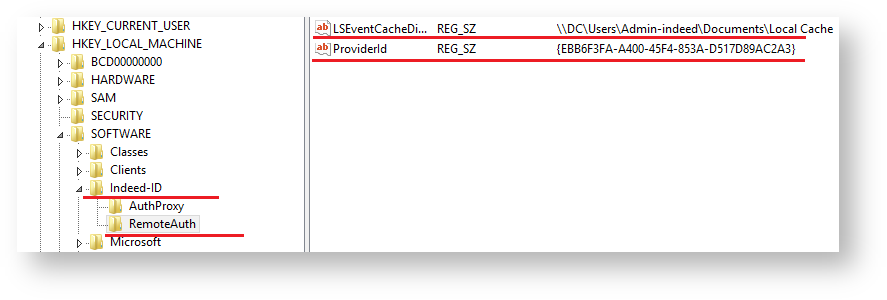 - Create Indeed-ID key with nested RemoteAuth key in HKEY_LOCAL_MACHINE\SOFTWARE\ section.