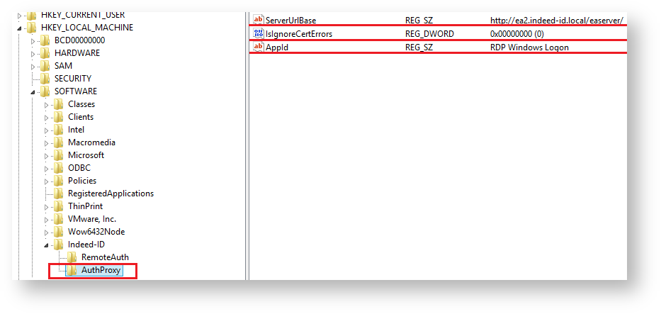 - Modify the following parameters in HKEY_LOCAL_MACHINE\SOFTWARE\Indeed-ID\AuthProxy section: