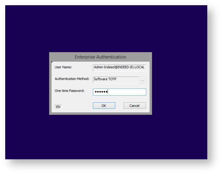 Indeed AM RDP Windows Logon module makes it possible to implement two-factor authentication with Indeed AM technology when connecting via RDP or Remote App. Master password (Passcode provider), one-time password, generated by mobile application (Software OTP provider) or the one sent via SMS or email can be used as the second factor.