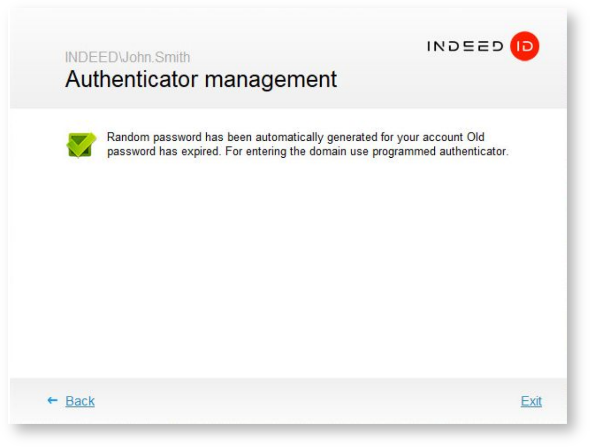 In this case the new domain password should be synchronised with Indeed data storage upon the next logging in to the system with authenticator and at least one of the Indeed servers available. After the password is successfully synchronized, logging in to the system is performed.