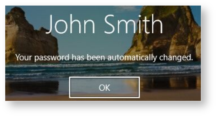 automatically upon logging in to the system. The system displays a notification of successful automatic change of password: