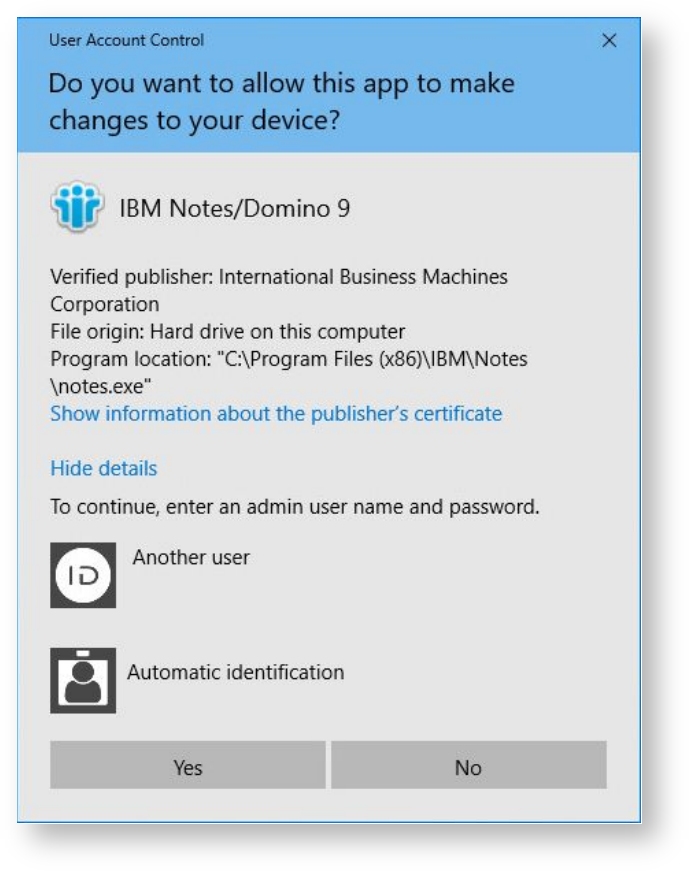 For Microsoft Windows Vista operating system and later versions, authentication request using Indeed AM technology is implemented for the Run as administrator standard command. Upon running this command, the user account selection dialogue displays, followed by the Authentication window of the Indeed AM system. The appearance of user account selection window may vary depending on the operating system version. Figures 24 shows the example of this window for Windows 10.
