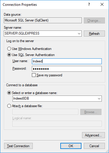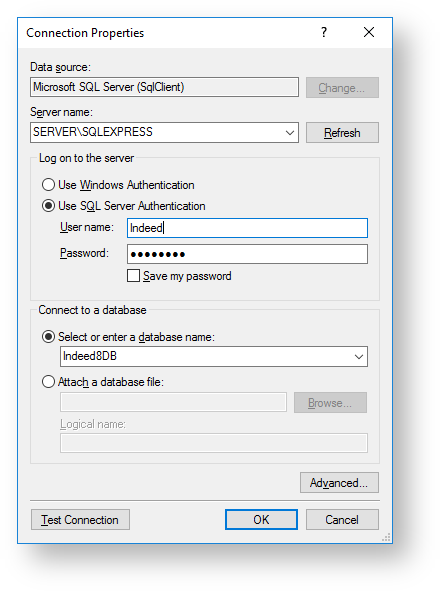 Data Source - this defines the server instance. The parameter is mandatory for all connections. Admissible values are: network name or server IP address, local or localhost for local connections.