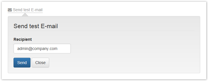 Use the test message feature to check the mail server settings. To do so, define the mail server settings, click the Save button and then - Send test E-mail.