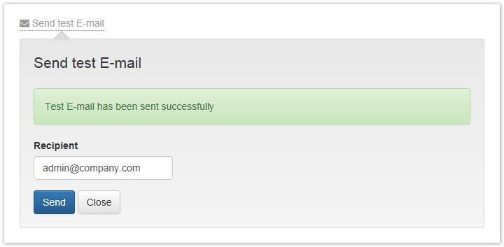 Click the Close button. If sending of test message fails, modify the mail server settings, click the Send button and try again.