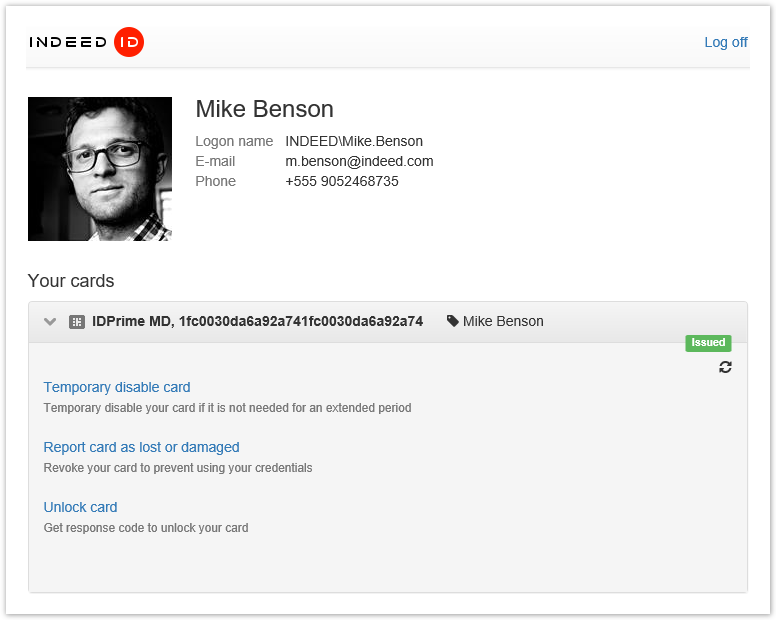 The application is intended to perform operations with a smart card without connecting it to the user computer. It is available at https://<Indeed CM server address>/icmremote and can be published in order to provide for access from Internet. To use Remote Self Service, a user has to specify his or her name and characters from captcha.