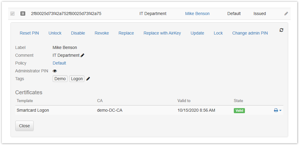 You can check the changes in the tags by viewing the contents of the selected smart card. Select the smart card and click