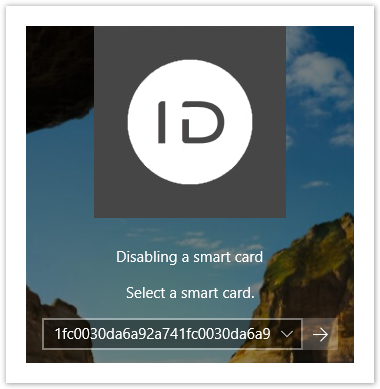 - To deactivate a card, select Disabling a smart card item in the user selection window. The figure shows an example for Windows 10. The mechanism of smart card disabling in other Windows versions is similar to the one described.