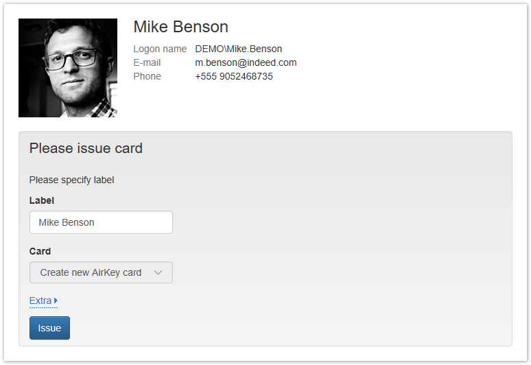 When a user logs in to Self Service, he or she is prompted to Create new AirKey card or select a connected hardware card: