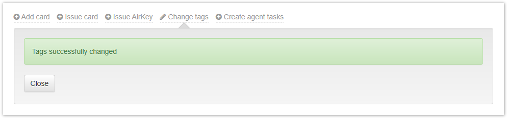 If the tag change is successful, the corresponding message will appear: