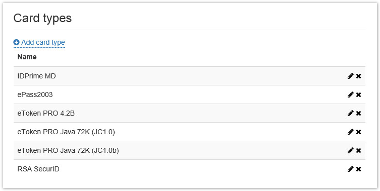 To save the changes made, click Save. To remove a smart card type, select the required one in the list and click