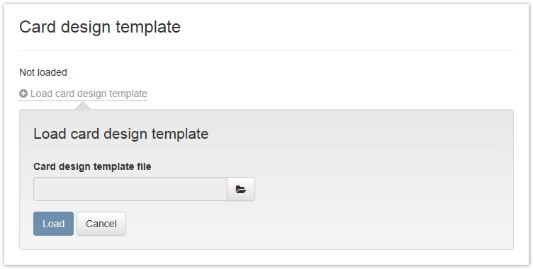 To load a template, click Load card design template, indicate the template file and click Load button. After loading, the template status in the policy ("not loaded" changes to the name defined in the template file.