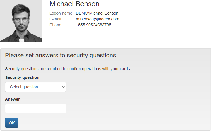 - Set answers to security questions (available the first time you log into Self-Service before the smart card issuance).