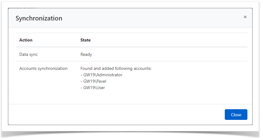 Accounts synchronization – data on accounts, their groups in the PAM database is compared with the actual data on the resource and their update is performed.