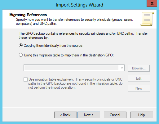 6. In the Migrating References window, select the Copying them identically from the source. item