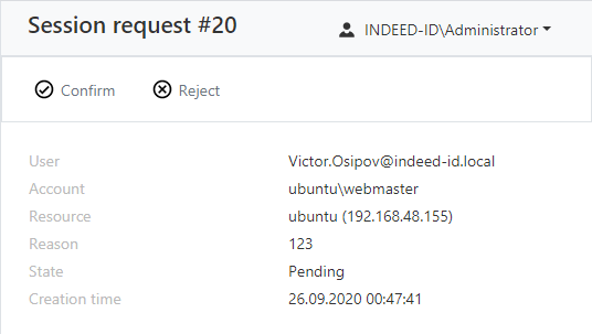 The section is designed to work with requests for opening sessions to the corresponding resources. This mechanism allows you to configure additional confirmation by a second person (PAM Administrator) to connect to the target resource.