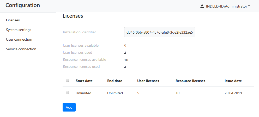 The section contains data about user connections. User RDP and SSH connections are built-in and cannot be changed or deleted.
