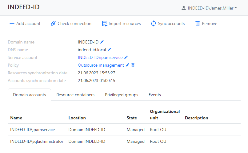 - Policy — is the set of rules applied to domain accounts added to Indeed Identity PAM