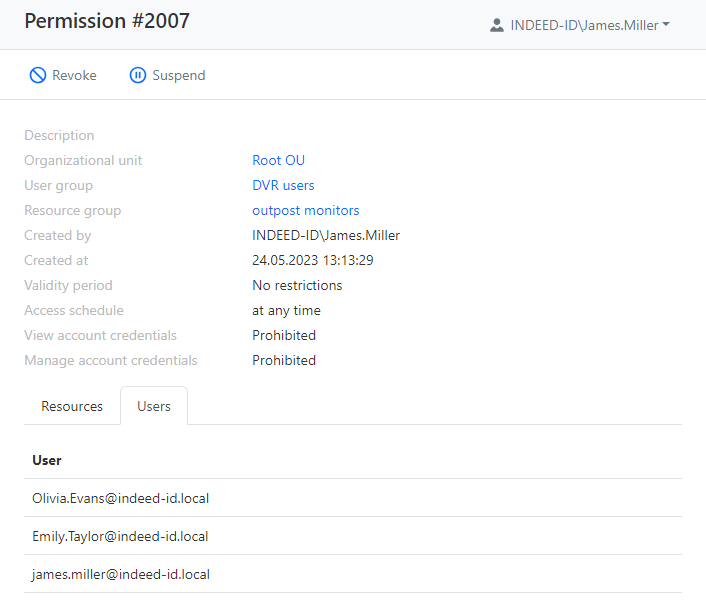 - Created by — Indeed Identity PAM administrator account who created the permission
