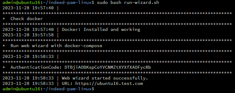 5. In the Authentication Code field, enter the value you see in the console after executing the script.