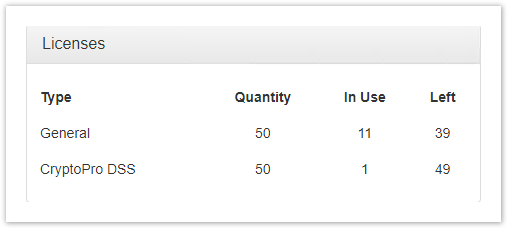 - Remaining licenses