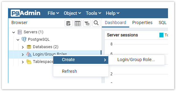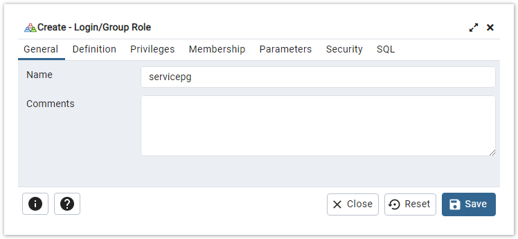 4. On the General tab in the Name field enter name of the role, for example - servicepg.
