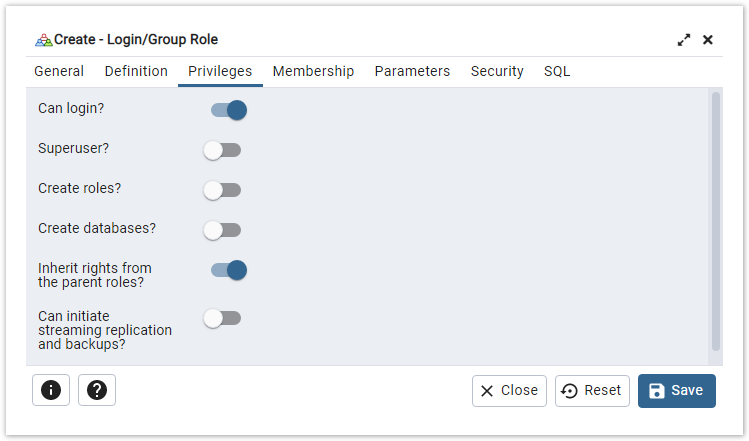 6. Turn on the Can Login? parametr on the Privileges tab.