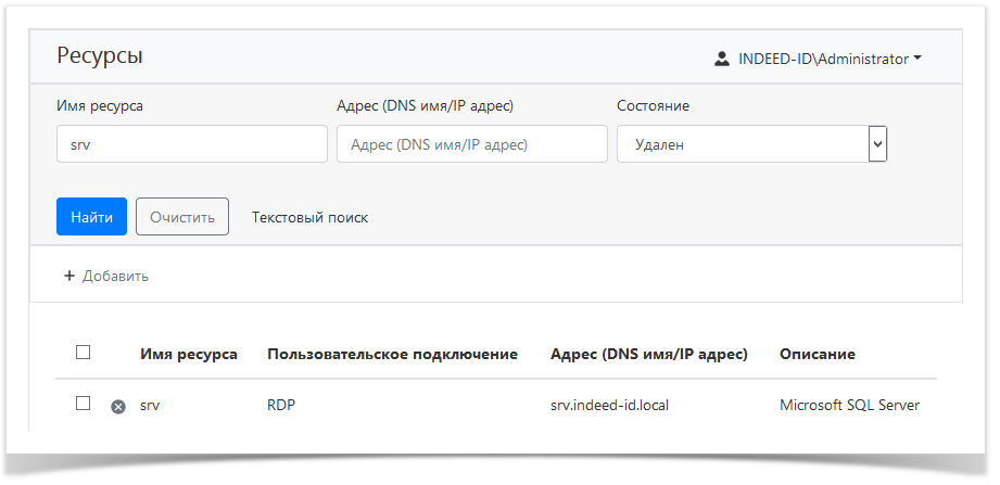 Перед удалением ресурса необходимо удалить из Indeed PAM все локальные УЗ доступа ресурса, которые были добавлены. |