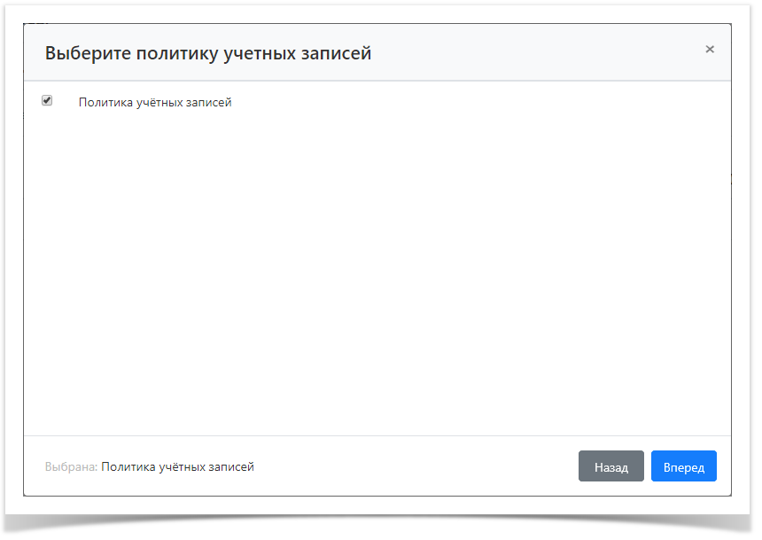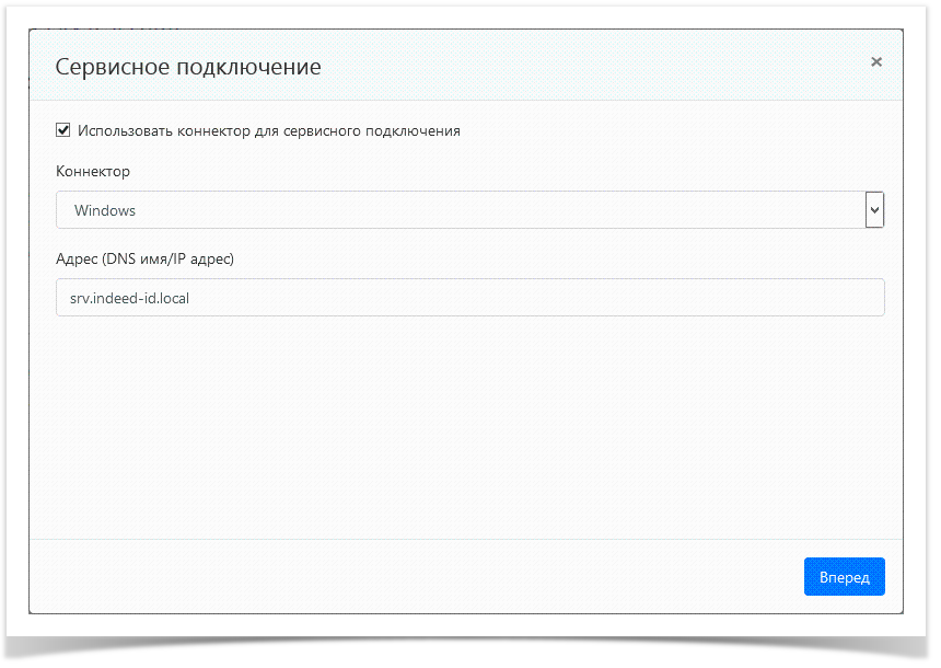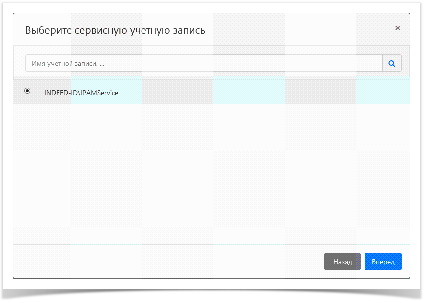 Note icon false Если в качестве сервисной планируется использовать локальную учётную запись ресурса, то настройку можно пропустить и вернуться к ней после добавления учётной записи. Если в Indeed PAM добавлен домен Active Directory, то в качестве сервисной можно использовать доменную учётную запись.