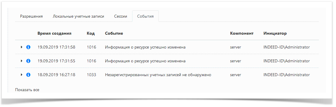 - Компонент - компонент Indeed PAM, который сгенерировал событие.