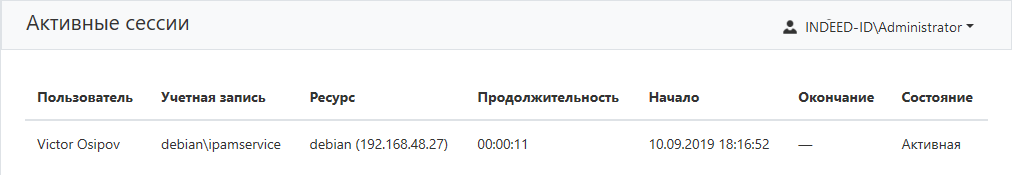 Раздел предназначен для отображения всех активных сессий.