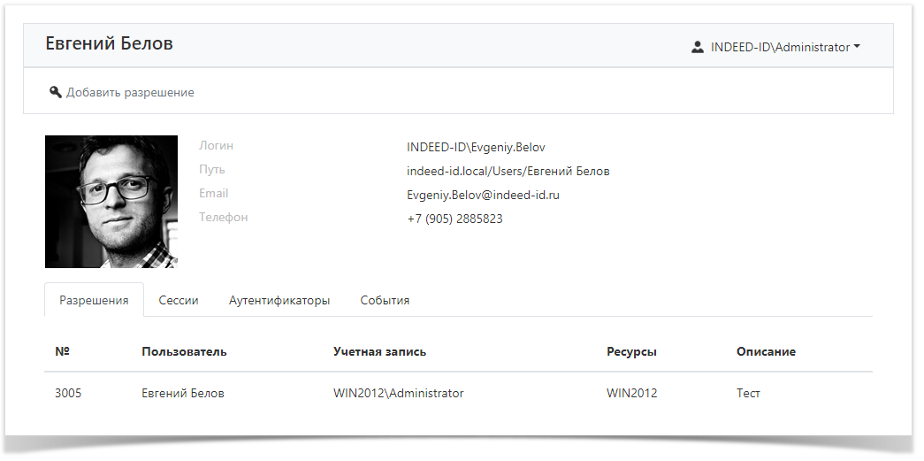 - Пользователь - пользователь каталога Active Directory, для которого выдано разрешение.