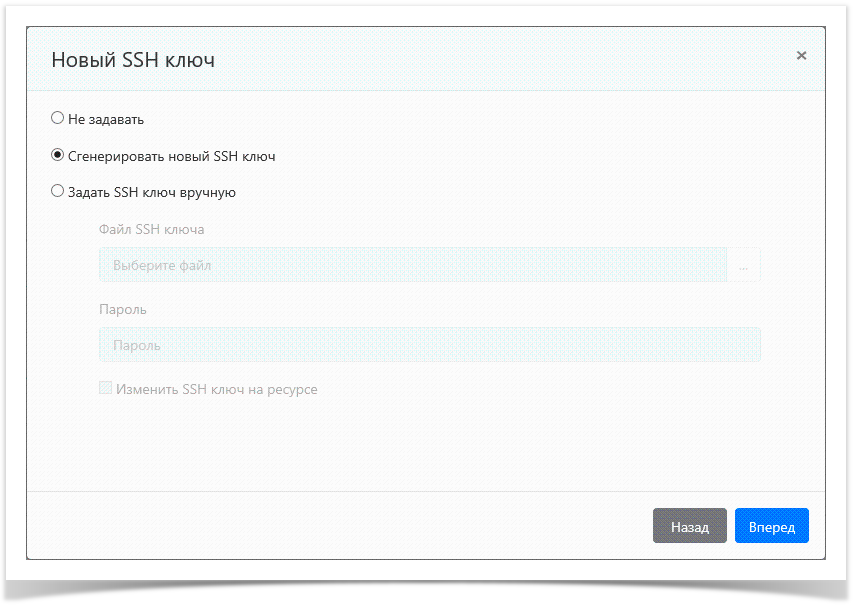 Задать SSH ключ вручную + Изменить SSH ключ на ресурсе