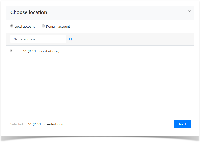 Для поиска введите Имя ресурса или Адрес (DNS адрес/IP адрес) полностью или частично. - Доменная учётная запись