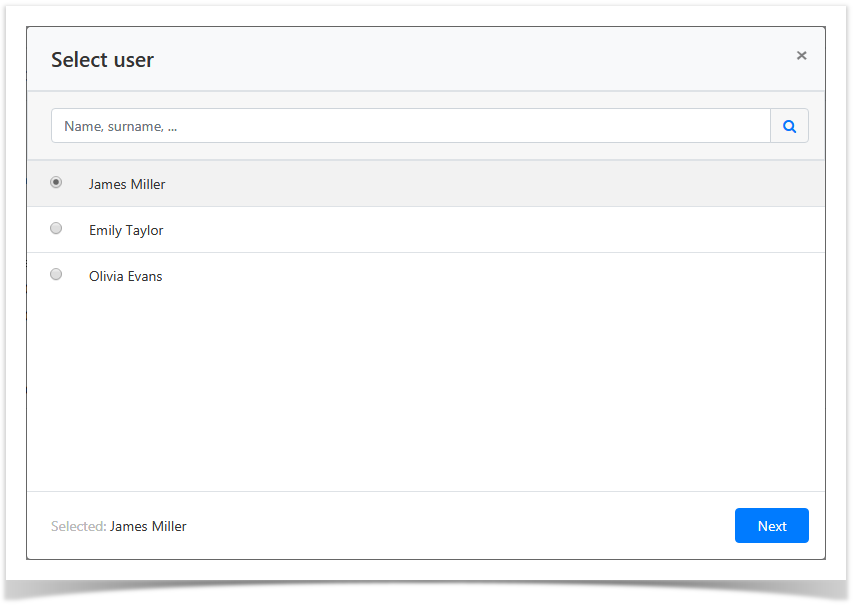To do so, enter Name, Last name, Phone number or Email to the search string completely or partially.